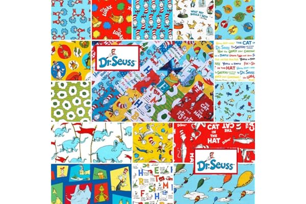 Seuss Favorites Precut 5-inch Cotton Quilting Squares Charm Pack Fabric Cotton Assortment Dr Seuss