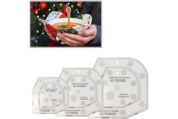 3 Pieces Bowl Cozy Pattern Template 3 Sizes 8/10/12 Inch Clear Acrylic Bowl Wrap Sewing Pattern Template with 3 Pieces Water Soluble Pen Bowl Batting Quilting Template Cut on Fold Stencil (Bloom Edge)