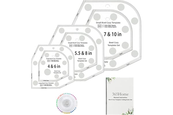 Bowl Cozy Pattern Template, Bowl Cozy Template Cutting Ruler Set, Bowl Cozy Template for Sewing, Large Bowl Cozy Template with 40 Pcs Cool Pins and User Manual(3 Sizes)