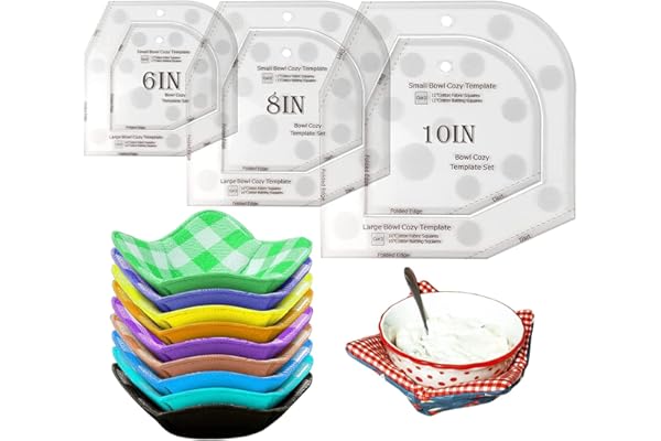 3Pcs Acrylic Transparent Quilting Bowl Templates for Hot and Cold Food Bowl Rack, DIY Kitchen Art Craft Acrylic Stencil Cut On Fold Template Sewing (6''/8''/10'')