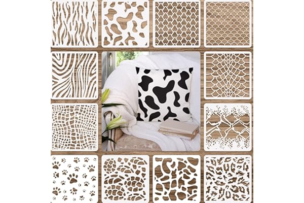12 Pieces Animal Print Stencils Painting Templates Stencils DIY Design Stencils for Scrapbooking Drawing Tracing DIY Furniture Wall Floor Decor (7.87 x 7.87 Inch)