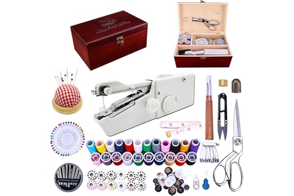 Hand held Sewing Device Heavy duty, Hand Sewing Machine Portable, Wooden Sewing Box with 153 Pcs Sewing Kit
