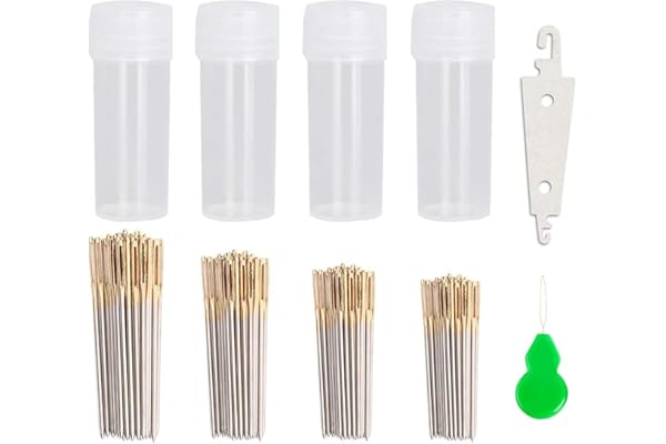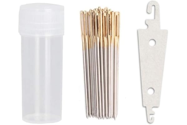 100pcs Cross Stitch Needles + Needle Threader Golden Color Large Eyes Cross Stitch DIY Embroidery Hand Needles Sewing Needles in Transparent Box (26#)
