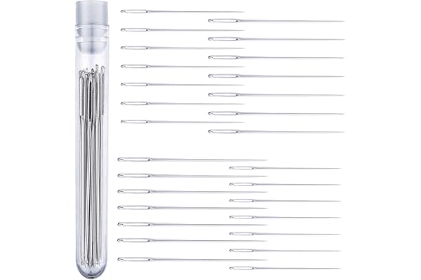 Four Sizes Set of 28 Large Eye Sewing Needles in Storage Tube