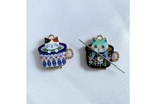 2 Pieces Needle Minder Cartoon Cup Cat Cute Needle Holders Magnet for Modern Cross Stitch Embroidery Accessories