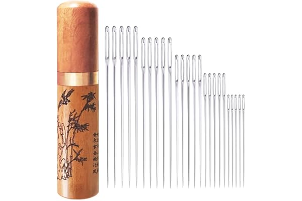 Embroidery Needles, Stainless Steel, 25 Pieces Sharp Needles with Wooden Needle Case Carving Pattern