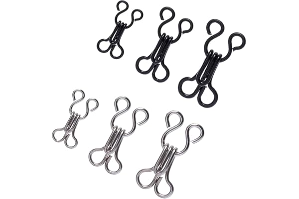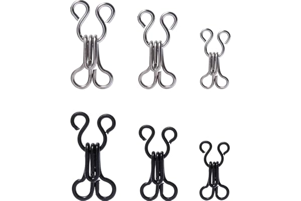 KACOLA Bra Hooks Replacement, Large Hooks and Eyes Clasps for Clothing, Sewing DIY Craft, 3 Sizes 23/17/12.5mm, Black and Silver