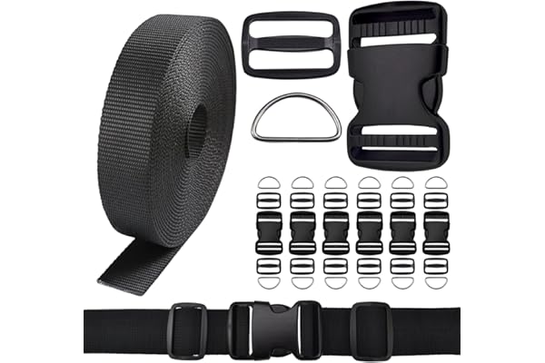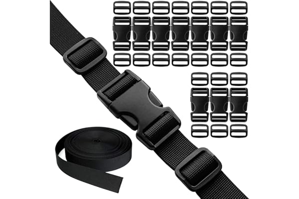 3/4 Inch Buckles Straps Set 6 Yards 3/4 Inch Black Nylon Webbing Strap 6 Pcs Plastic Buckle Dual Adjustable 12pcs Tri-glide Slide Clip Metal D Rings