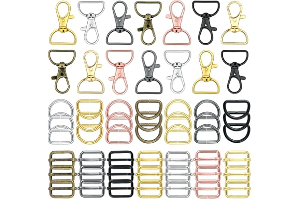 56 Pieces Purse Hardware Keychain Hooks with D Rings Set for Bag Making Lanyard Snap Hooks Metal Swivel Clasps with D Rings and Slide Buckle for Purses Keychain Lanyard Handbags (Mixed Color,25 mm)