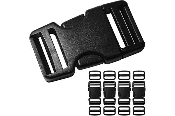 Buckles Straps Set of 1 inch: 10 pcs Quick Side Release Plastic Buckle Dual Adjustable + 12 Yard Black Nylon Webbing Strap Band + 20 pcs Tri-glide Slide Clip