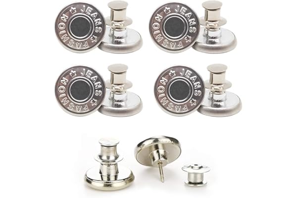 No Sew and No Tools Instant Jean Button Pins for Pants ,4 Sets Replacement Buttons, Simple Installation, Reusable and Adjustable