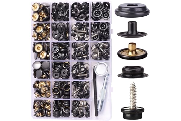 CENOZ Marine Grade Stainless Steel Snaps,Screw Snaps,Boat Cover Snaps,Carpet snap kit with Setting Tool for Boat Cover Furniture (black-274PCS)