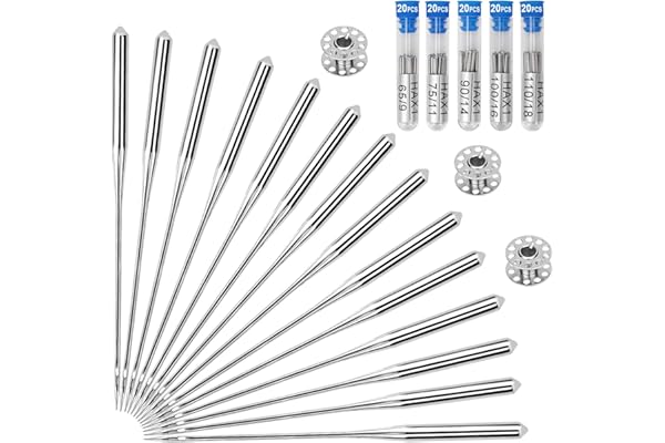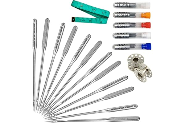 Universal Sewing Machine Needle for Singer, Brother, Janome, Varmax, Needles for Sewing Machine with Sizes HAX1 65/9, 75/11, 90/14, 100/16, 110/18