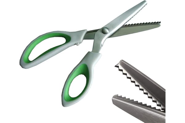 JISTL Green Pinking Shears Comfort Grips Professional Dressmaking Pinking Shears Crafts Zig Zag Cut Scissors Sewing Scissors