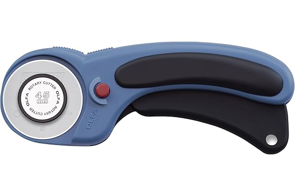 Rotary Fabric Cutter w/ Blade Cover & Squeeze Trigger for Crafts, Sewing, Quilting, Replacement Blade: OLFA RB45-1 (Pacific Blue)
