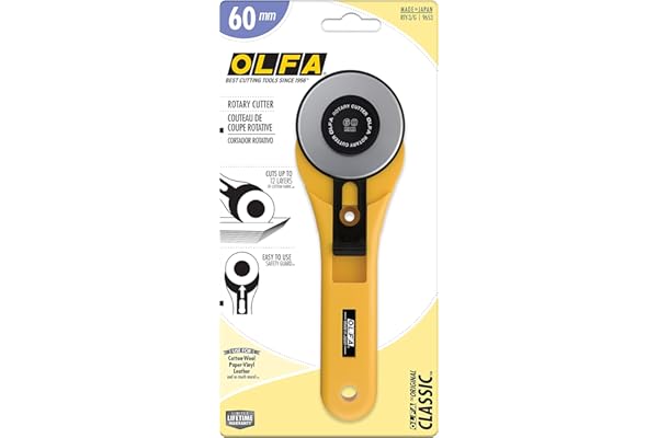Rotary Fabric Cutter w/ Blade Cover & Squeeze Trigger for Quilting, Sewing, Crafts, Replacement Blade: OLFA RB45-1H