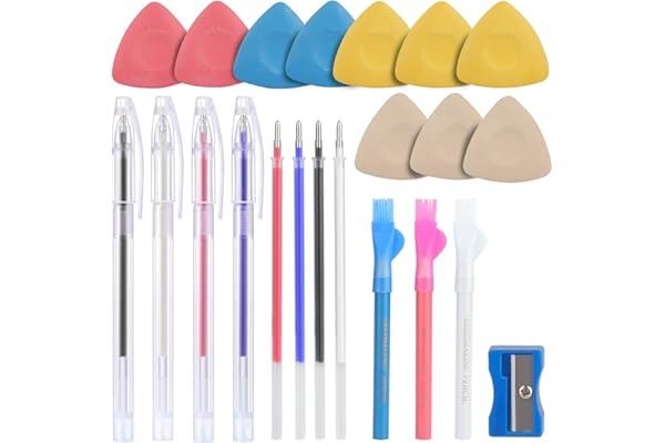 Sewing Fabric Chalk and Fabric Markers for Quilting,10PCS Tailor’s Chalk,4PCS Heat Erasable Fabric Marking Pens with 4 Refills,3 PCS Sewing Fabric Pencils