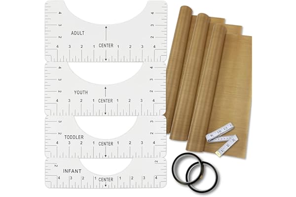4 Rulers, 2 Rolls Heat Resistant Tape, 3 Packs PTFE Teflon Sheet and 1 Tape Measure Included