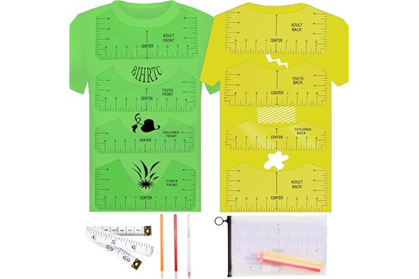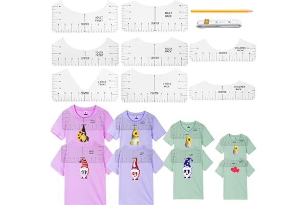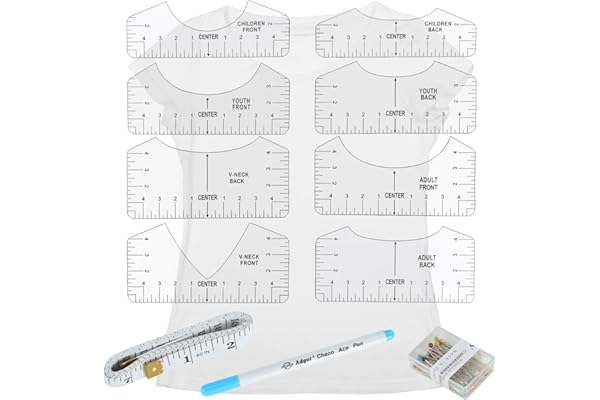 T-Shirt Alignment Guide Tool Tshirt Ruler Guide T Shirt Rulers to Center Designs for Transparent V-Neck/Round T Ruler Children Youth Adult Front and Back Measurement