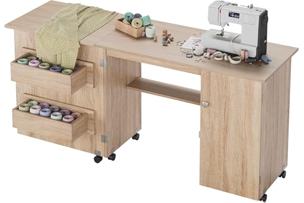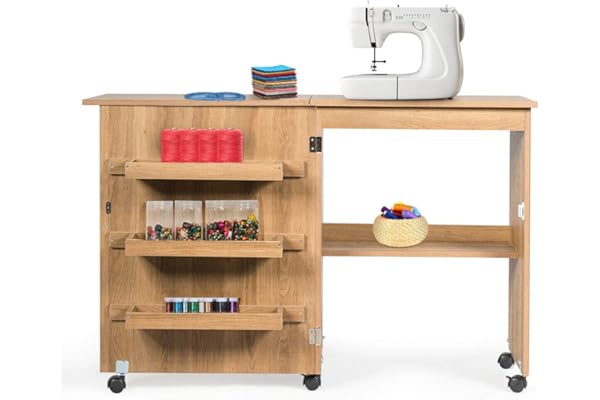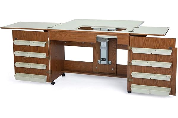 Cutting, Quilting, Crafting, Portable with Wheels, Airlift, and Storage, Oak Finish