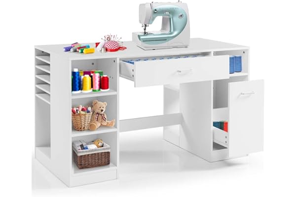 Specialized Sewing Machine Shelf, Enlarged Cutting Space, Sturdy Multifunctional Computer Desk with Storage Drawer, Adjustable Height, Ideal for Home Indoor Use