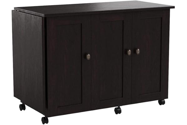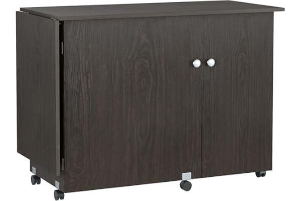 Sewing Cabinet with Shelves, Sewing Desk with Lockable Casters, Sewing Craft Table / Cart, Brown (ST001)