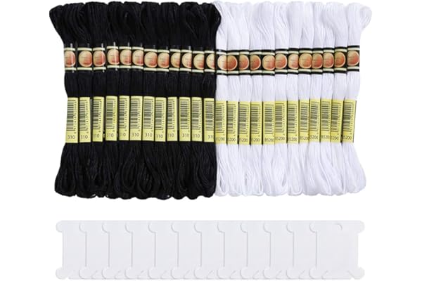 Pllieay 24 Skeins Black and White Embroidery Cross Stitch Threads Cotton Embroidery Floss