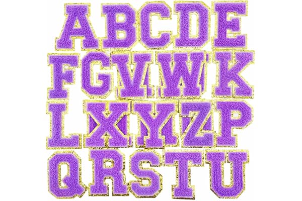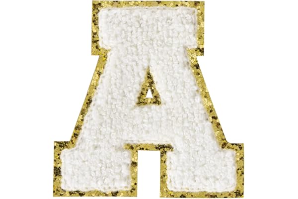 Jongdari Letter Patches Varsity Chenille Iron on Letters Patchs for Clothing English Letter A-Z with Gold Glitters Border