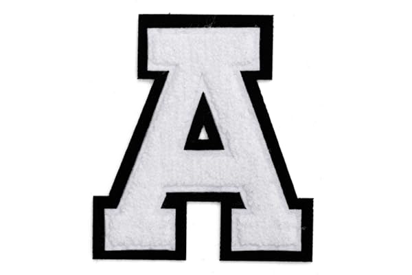 Chenille Stitch Varsity Iron-On Patch by pc, 4-1/2", White/Black, TR-11648