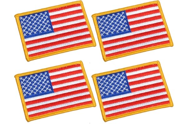 Inch Large Size American US Flag Embroidered Cloth Sew on Iron on Patch Golden Yellow Border.