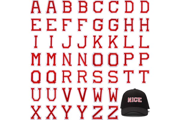 Alphabet Applique Patches or Sew on Appliques with Embroidered Patch A-Z Letter Badge Decorate Repair Patches for Hats, Shirts, Shoes, Jeans, Bags (Red, 52 Pieces)