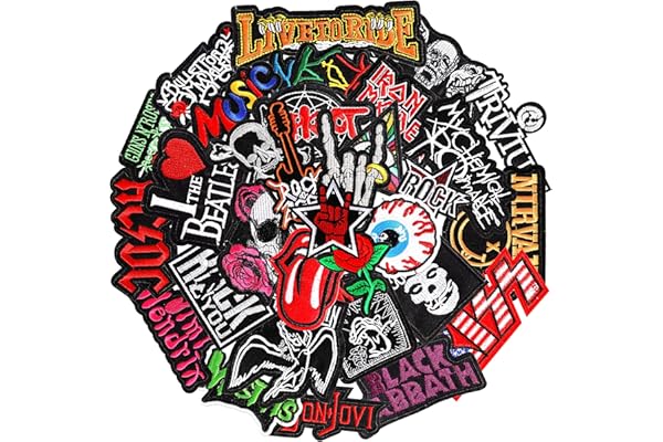 NICEVINYL Embroidered Iron on Patches for Clothing: 32Pcs Heavy-Metal Band Patches Music Skull Applique Sew on Embroidery Badge Cool Punk Rock Metallica-Patch Set for Jackets Clothing Backpacks