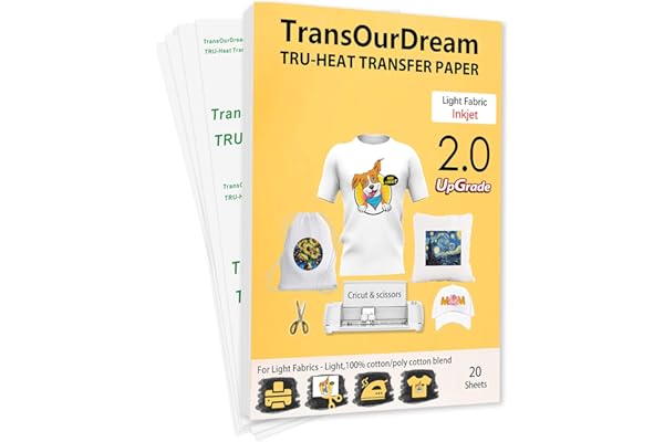 TransOurDream Upgraded Iron on Heat Transfer Paper for T Shirts (20 Sheets, 8.5x11") Iron-on Transfers Paper for Light Fabric Printable Heat Transfer Vinyl for Inkjet Printer (TOD-4)
