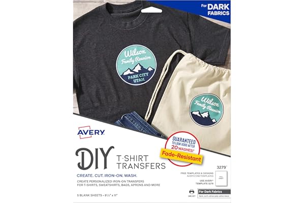 Avery Printable Heat Transfer Paper for Dark Fabrics