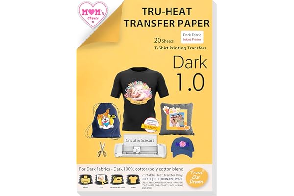 TransOurDream Iron on Heat Transfer Paper for Dark T Shirts (20 Sheets 8.5x11", Dark 3.0) Printable HTV Heat Transfer Vinyl for Inkjet & Laserjet Printer Iron On transfers for T Shirts (TRANS-D3-20)