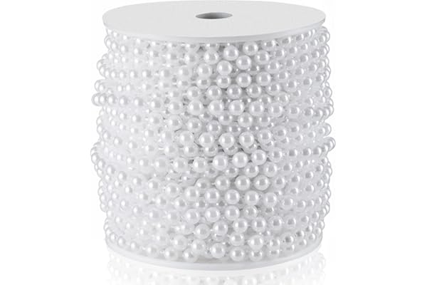 6mm 27 Yds White Pearl Strands Spool Pearl String Bead Roll for Wedding Party Christmas Tree Decoration