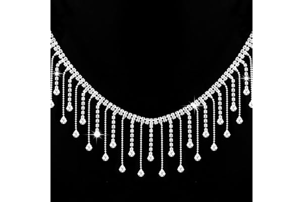 2 Yard Rhinestone Ribbon Tassel Chain- Irregular Style Rhinestones Fringe Trim- Diamond Crystal Long Tassel Trim for Wedding Party Necklace DIY Clothing Accessories Vase Decoration(Silver)