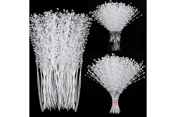 EOPER 60 Pieces 4mm Pearls String Wedding Bouquet Floral Beaded Sticks for DIY Bride Bouquet