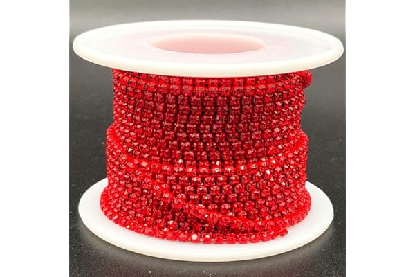 2mm Crystal Rhinestones Close Chain Roll, Sew on Crystal Rhinstone Chain Trim, Crystal Claw Cup Chain (Siam / Red, SS6 / 2mm)