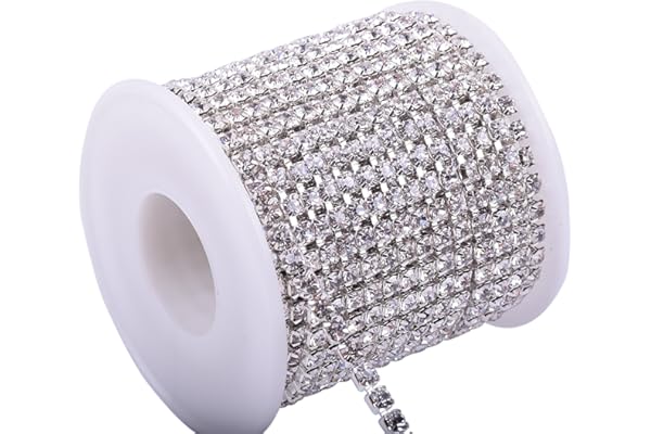 1 Roll 11 Yard, 2mm Rhinestones, Silver Rhinestones for Jewelry, Rhinestone Chain for Crafts, Roll of Rhinestones for Crafts, Crystal Rhinestone Chain Trim.