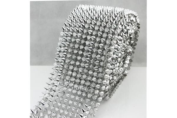 AEAOA 1 Yard Silver Sew Stitch On Pointed Spike Stud Cone Flatback Punk Rock Trim Mesh Bead Craft