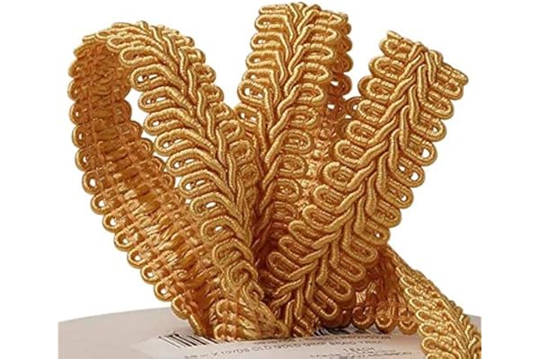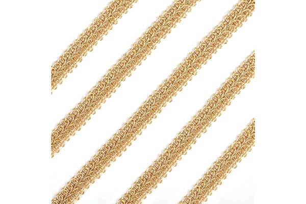 FINGERINSPIRE 15Yards Metallic Braid Lace Trim Gold Centipede Lace Ribbon Decorated Gimp Trim 5/8"(15mm)x1.5mm for Christmas Halloween Decoration Wedding Bridal