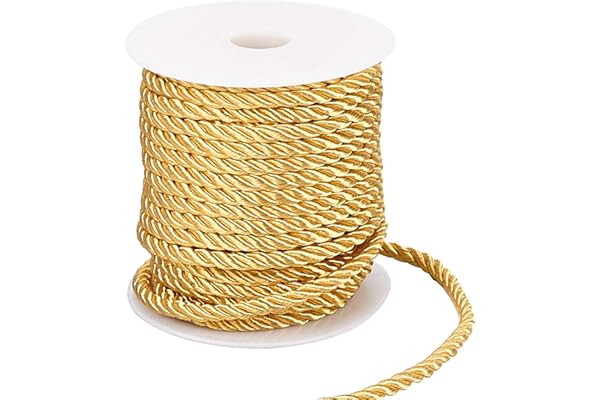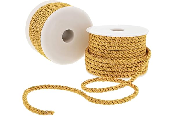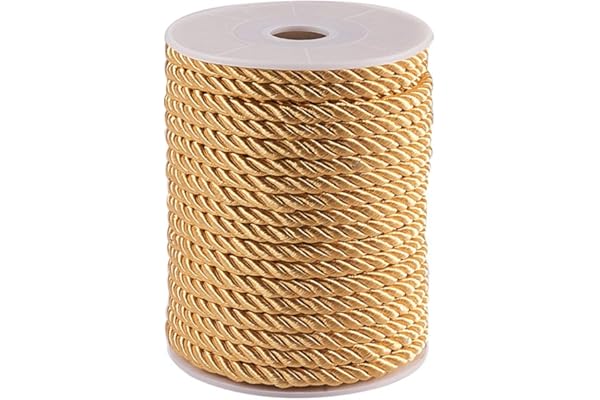 PH PandaHall 59 Feet 5mm Gold Twine Cord Rope 3 Braided Cord Thread Decorative Twisted Satin Polyester String Thread for Home Decor Upholstery Curtain Tieback Graduation Honor Cord