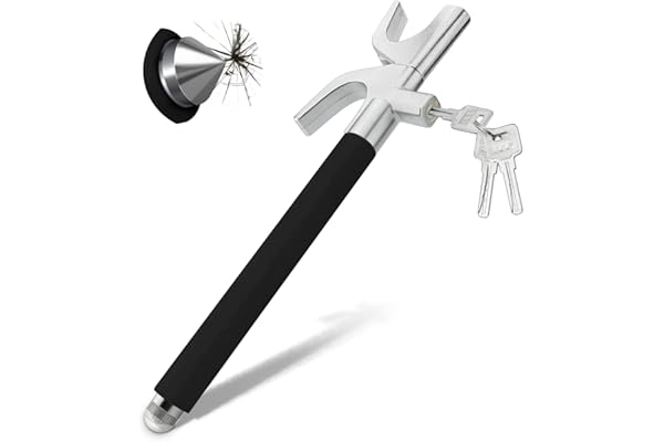 High Security Car Anti-Theft, 3 Curved Keys, Heavy Duty Steering Bar Lock, Adjustable Universal Car SUV Van Truck Motorhome, Emergency Hammer Built-in.