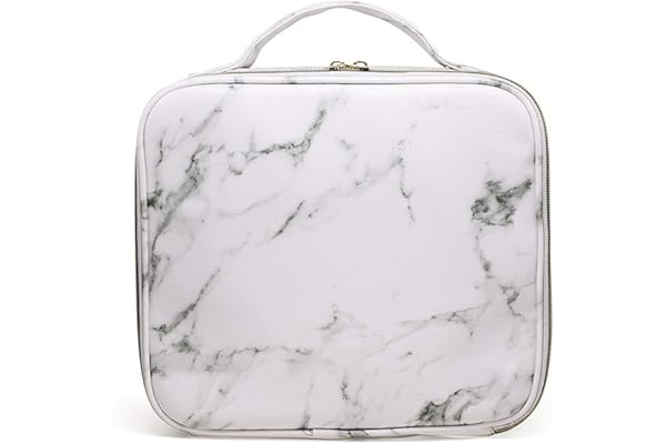 LKE Cosmetic Bags Marble Makeup Bag Waterproof Travel Makeup Bag Makeup Organizer Bag Jewelry Travel Organizer with Adjustable Dividers (9.8x8.86x3.7 inches)