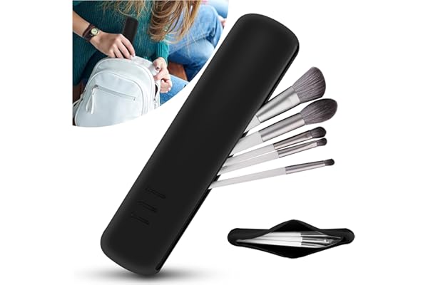 Silicone Makeup Brush Bag, Trendy Color and Portable Makeup Brush holder, Easy to clean & Reusable makeup brush cover for women (Calm Black)