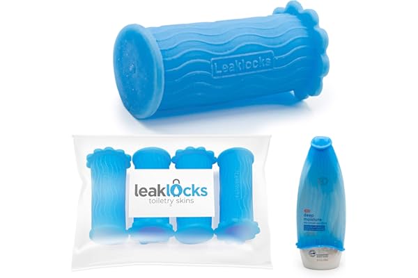 LeakLocks® Toiletry Skins™ 4 pak Elastic Sleeve for Leak Proofing Travel Container in Luggage