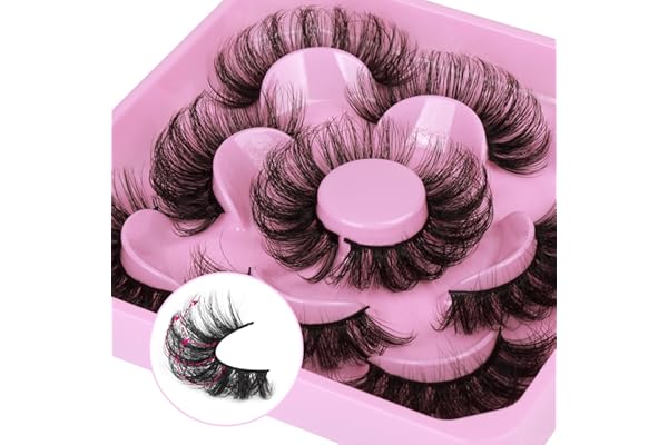 DYSILK 5 Pairs 6D lashes Faux Mink Eyelashes Fluffy Natural Look False Eyelashes Wispies Long Extension Eyelashes Pack Makeup Thick Fake Eyelashes Soft Reusable Lashes