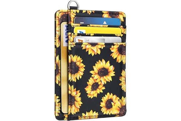 Slim Front Pocket Wallet RFID ID Card Holder Cute Small Wallet with Keychian for Women