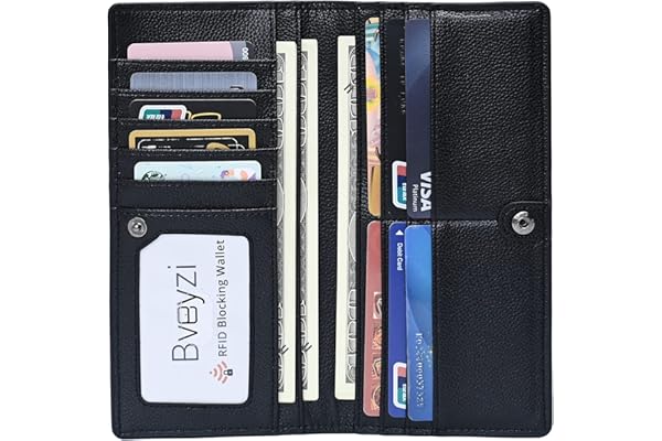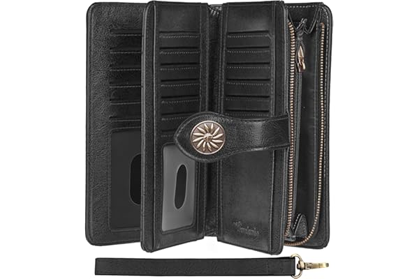Travelambo Womens Wallet Large Capacity RFID Blocking Genuine Leather Wristlet Wallets